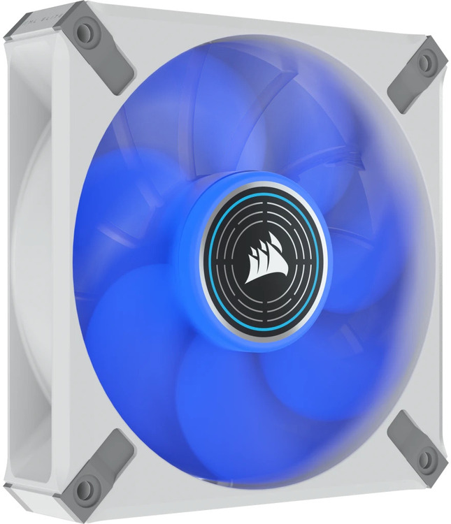 The CORSAIR ML120 LED ELITE Blue Premium 120mm PWM Magnetic Levitation Fan, White Frame boasts CORSAIR AirGuide technology and a magnetic levitation bearing for high-performance quiet, colorful cooling.