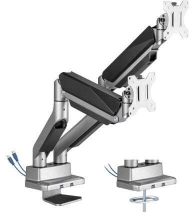 17"-35" Brateck LDT52-C024U Dual Monitor Aluminium Gas Spring Monitor Arm with USB