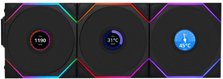 3x120mm Lian Li UNI FAN TL120 LCD Reverse Blade Wireless Black Fan 3 Pack