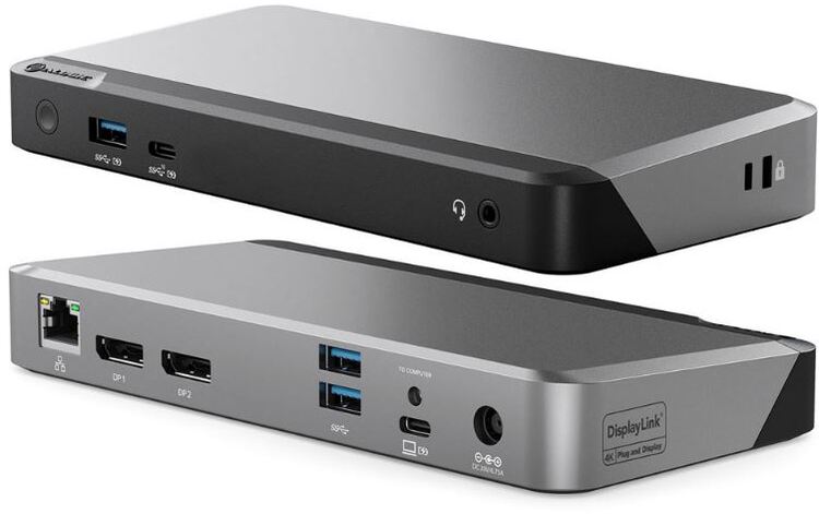 The dock provides for connection of up to two external monitors, Gigabit Ethernet networking, 3 x USB-A 3.2 (5G), 1 x USB-C 3.2 (10G), 3.5mm Combo Headphone Jack and SD and Micro SD Card Readers.