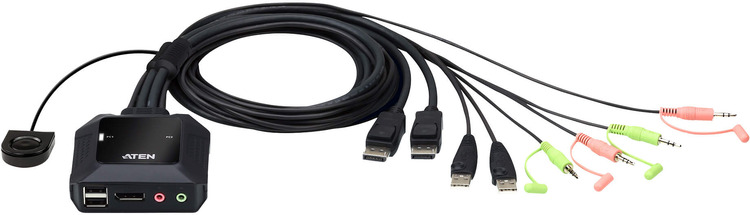 ATEN CS22DP 2-Port USB DisplayPort Cable KVM Switch with Remote Port Selector