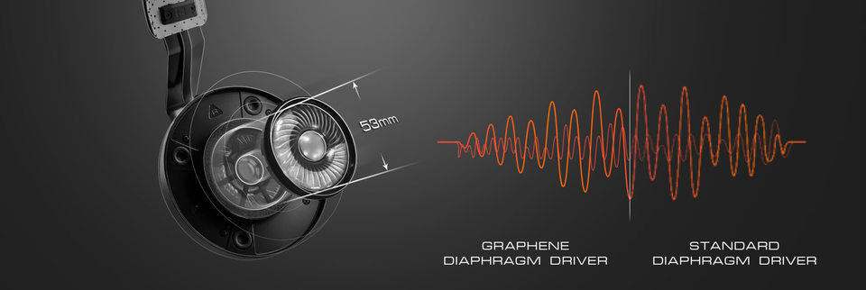 53mm drivers are equipped with graphene diaphragms that deliver audio with virtually no distortions.