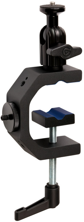 A heavy-duty G-Clamp with a ball head and four -inch threads, Heavy Clamp lets you mount gear almost anywhere. Desks, shelves, poles, random objects. Look around. Use your environment to set the perfect lighting angle, mic placement, or overhead shot. The world is your studio.
