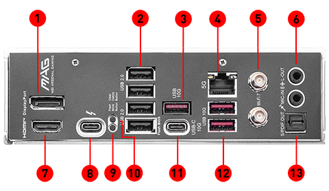 | Onboard Graphics | 1x HDMI™ Support HDMI™ 2.1 with FRL, maximum resolution of 8K 60Hz*/ ** 1x DisplayPort Support DisplayPort 1.4, maximum resolution of 4K 60Hz*/ ** 1x Type-C DisplayPort Thunderbolt™ 4 ports, supporting DisplayPort 2.1 with UHBR20 over USB Type-C, with a maximum resolution of 4K@120Hz / 8K@60Hz* *Available only on processors featuring integrated graphics. ** Graphics specifications may vary depending on the CPU installed. |