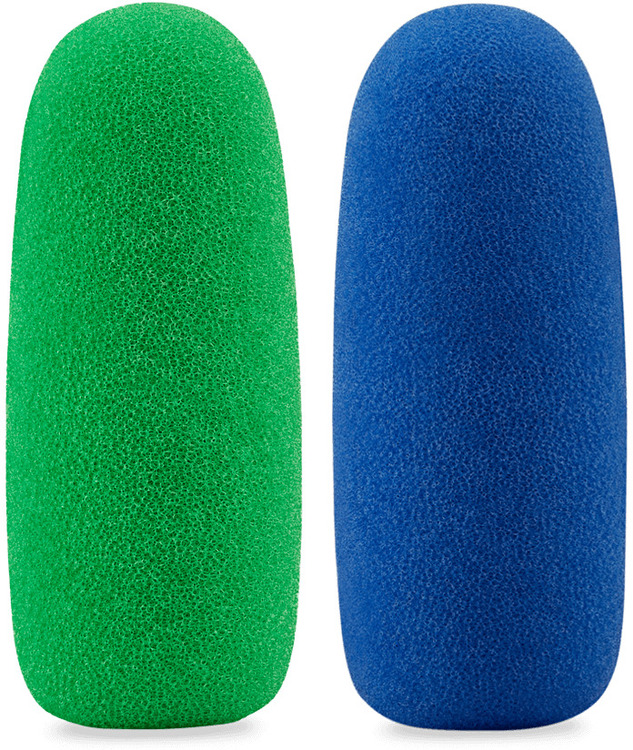 WS-Chroma is a set of two foam windshields for the VideoMic NTG coloured blue and green, making them suitable for chroma keying. The coloured foam enables the microphone to be placed in the frame and closer to the talent for optimal sound quality. Chroma key compositing can then be used to remove the microphone from the image.