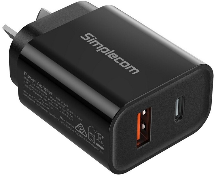 Simplecom CU220 Dual Port PD 20W USB-C + USB-A Fast Wall Charger