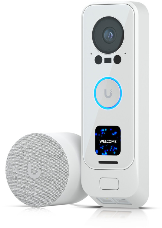 Premium UniFi doorbell with integrated PoE and included PoE chime for plug-and-play installation.
