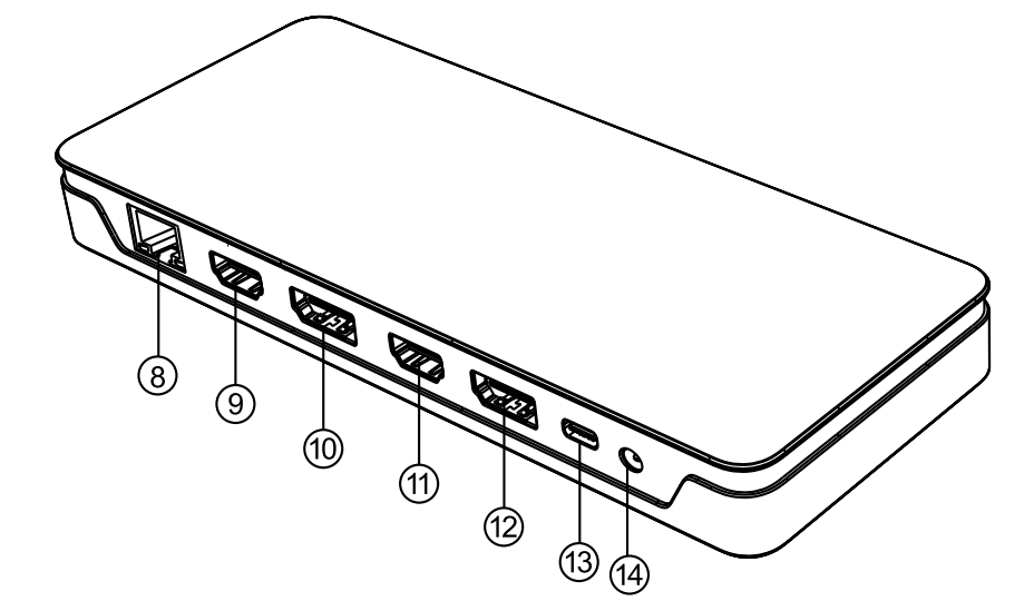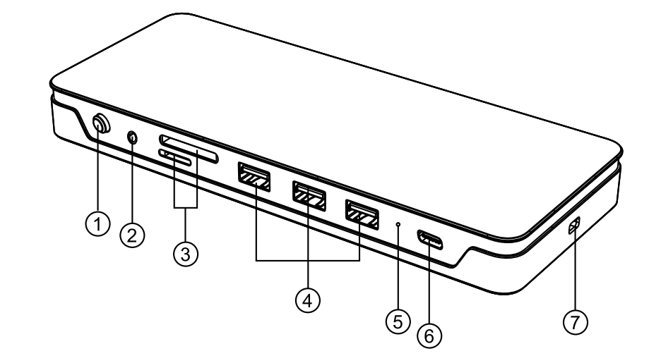 2 x 4K@60Hz DisplayPort , 2 x 4K@60Hz HDMI, 3 x USB-A 3.1 Gen2 (10G) , 1 x USB-C PD 100W. 1 x 3.5mm Combo Jack, 1 x Gigabit Ethernet Port,1 x SD Card Reader (SD 4.0), 1 x Micro SD Card Reader (SD 4.0).